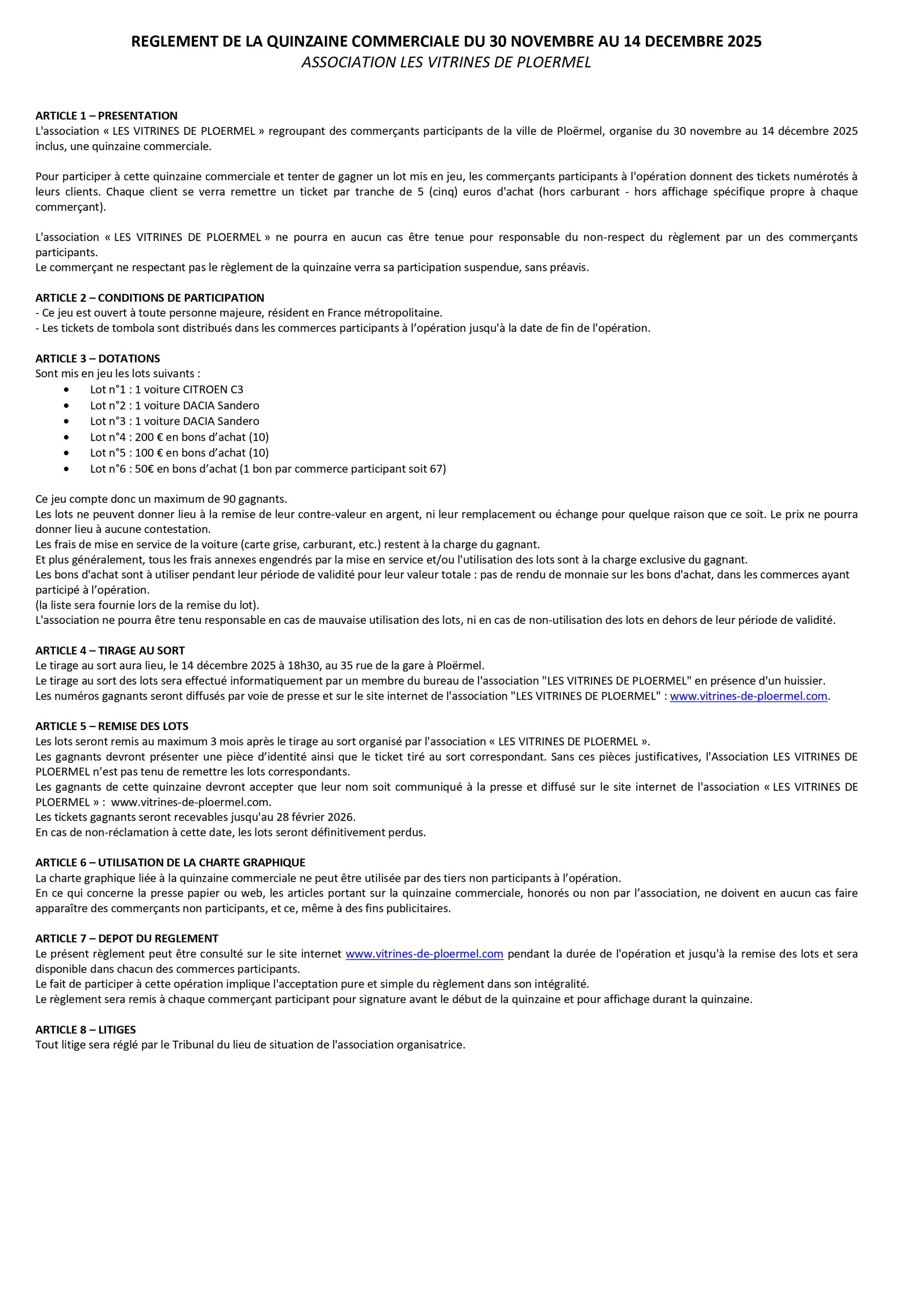 Découvrez les évènements organisés par Les Vitrines de Ploërmel avec vos commerces.