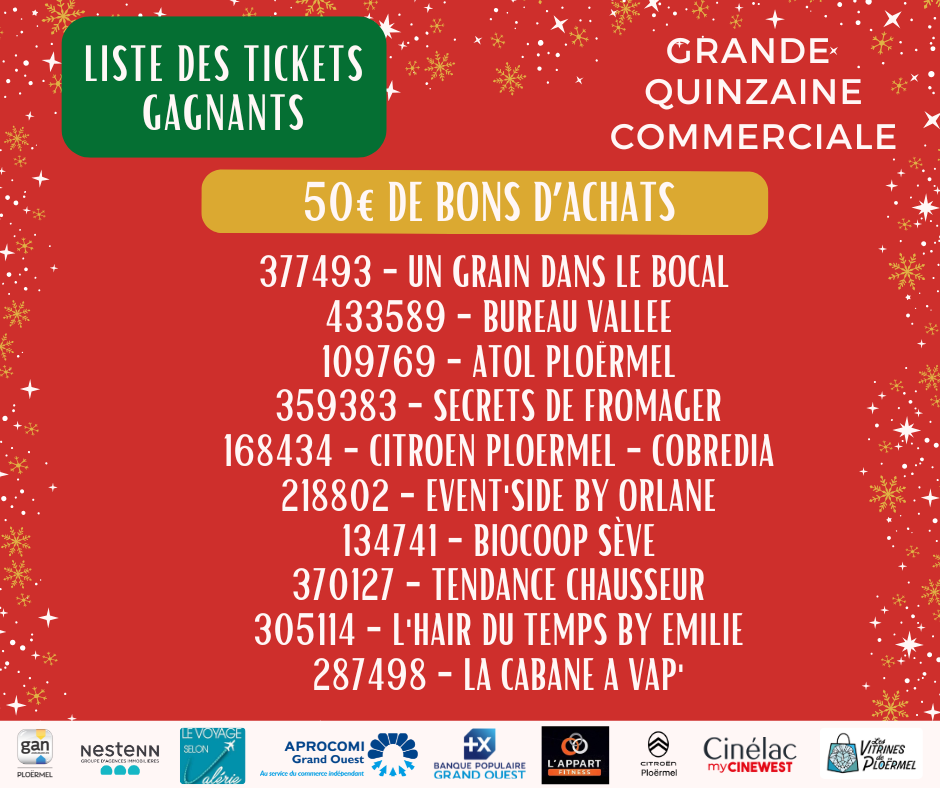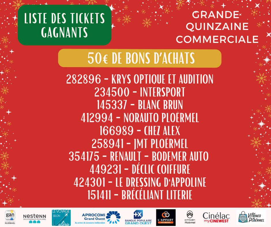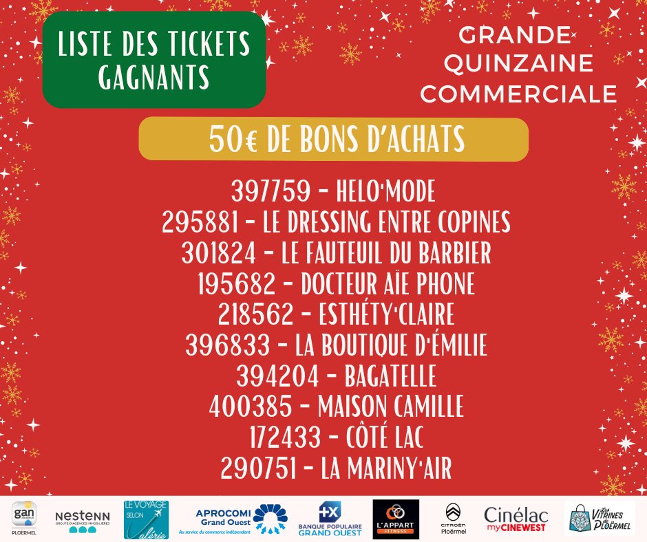 Télécharger l’affiche de la quinzaine commerciale Télécharger la liste des participants Télécharger le règlement de la tombola Télécharger le programme des animations
